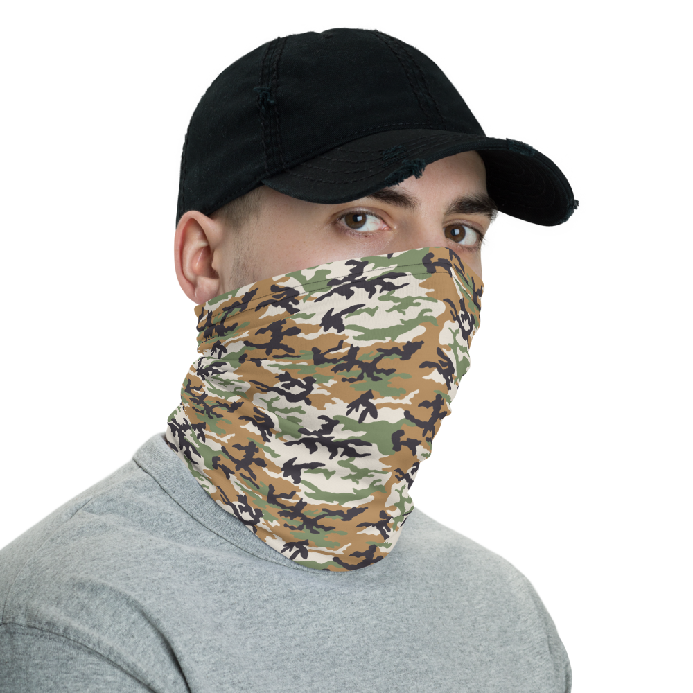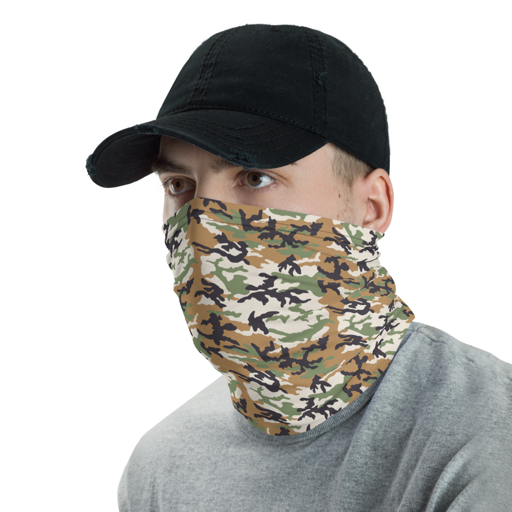 The Light Khaki Camo Neck Gaiter from Design Express is a versatile unisex accessory that can be used as a face covering, headband, bandana, wristband, and neck warmer. When used as a face covering, it can help limit respiratory droplets. Upgrade your accessory game and find a matching face shield for each of your outfits.