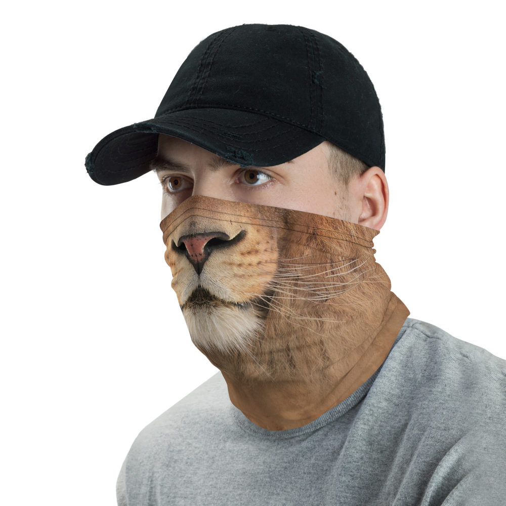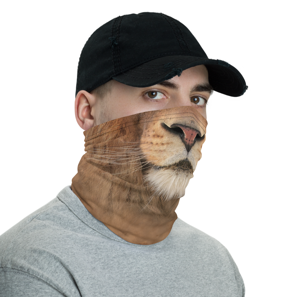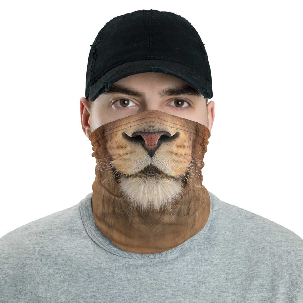 The Lion "All Over Animal" Neck Gaiter from Design Express is a versatile unisex accessory that can be used as a face covering, headband, bandana, wristband, and neck warmer. When used as a face covering, it can help limit respiratory droplets. Upgrade your accessory game and find a matching face shield for each of your outfits.