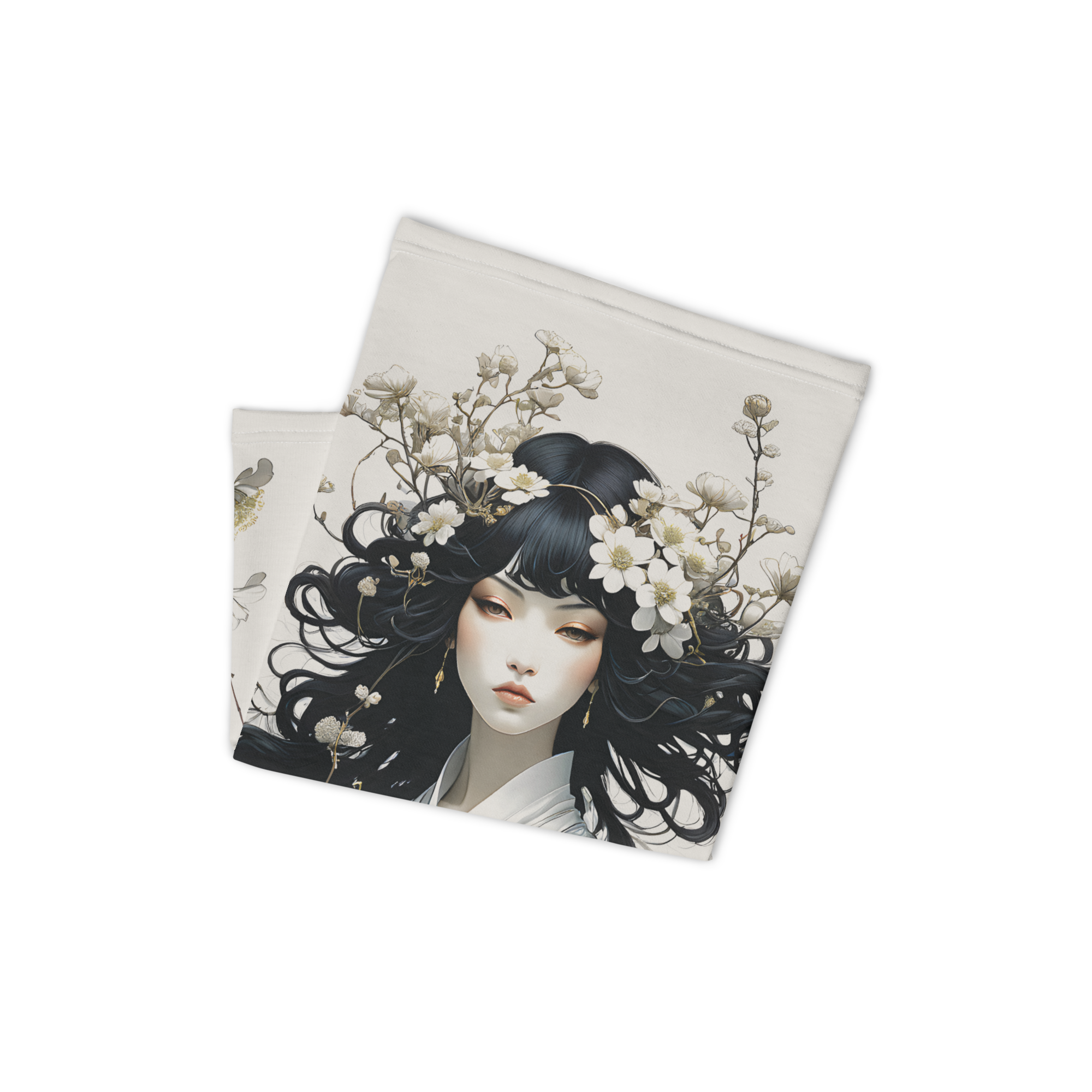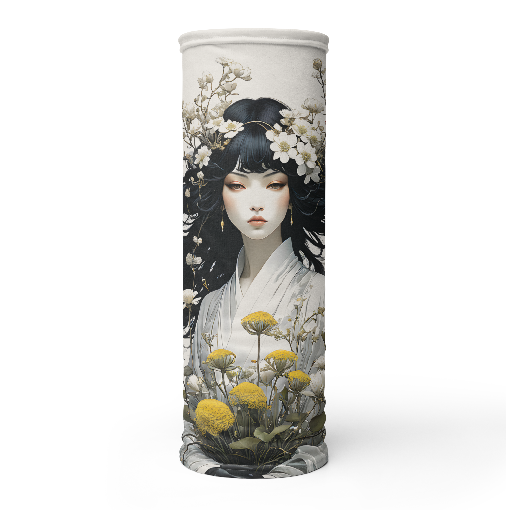 Oriental Lady with Yellow Flowers Face Mask & Neck Gaiter
