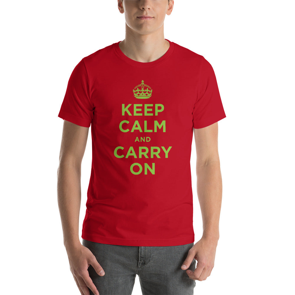 Red / S Keep Calm and Carry On (Green) Short-Sleeve Unisex T-Shirt by Design Express