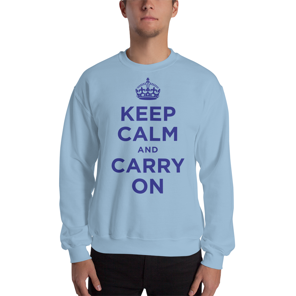 Light Blue / S Keep Calm and Carry On "Navy" Unisex Sweatshirt by Design Express