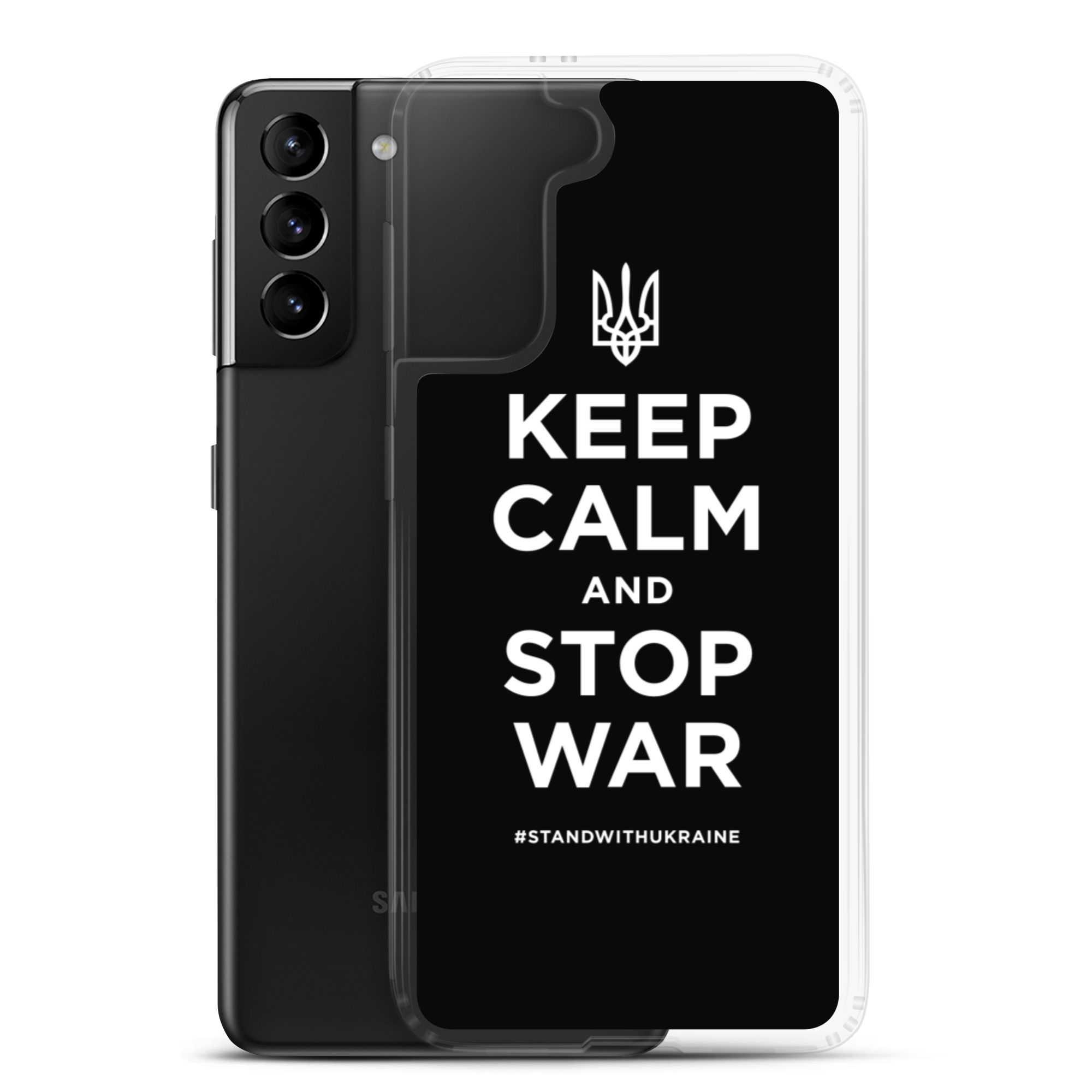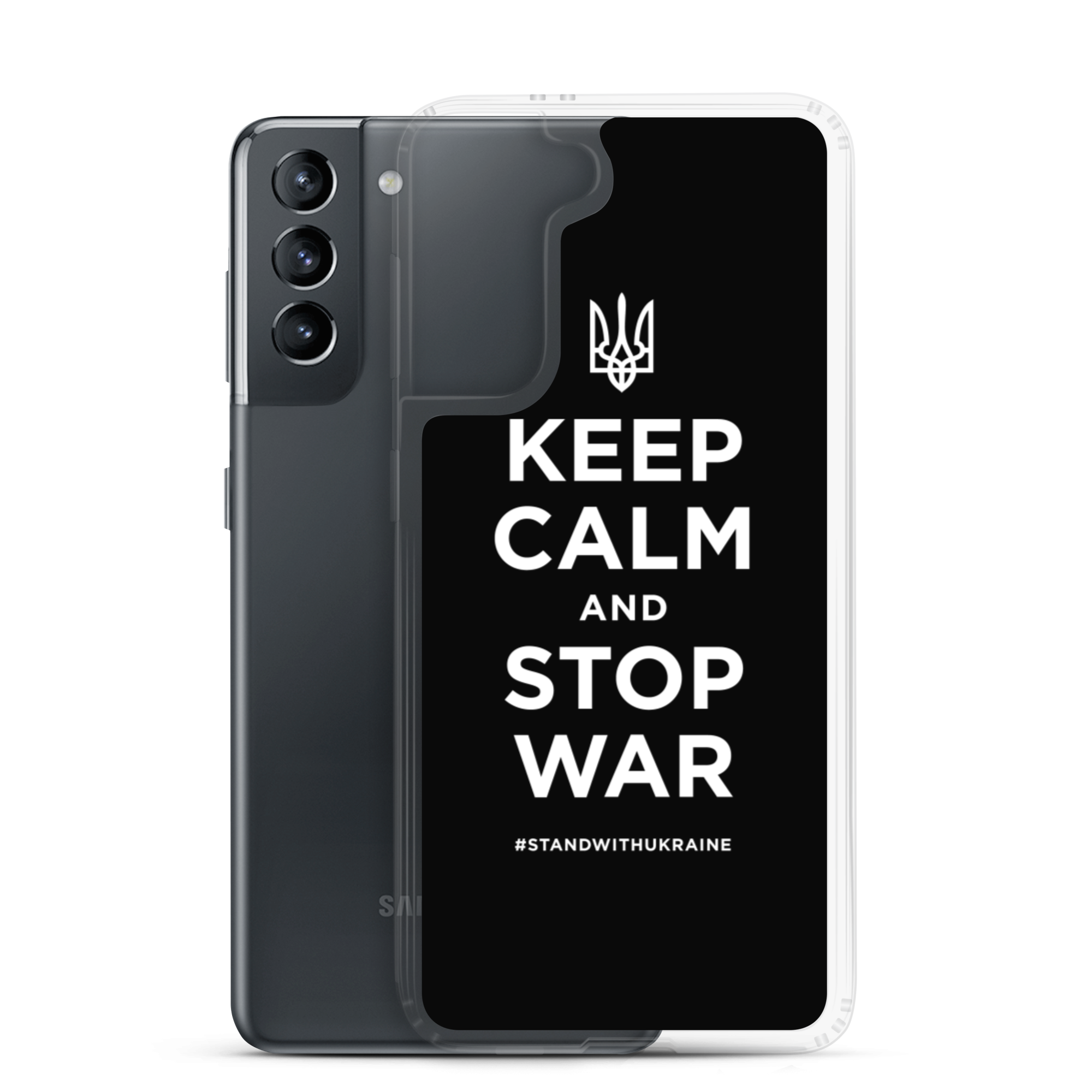 Samsung Galaxy S21 Keep Calm and Stop War (Support Ukraine) White Print Samsung Case by Design Express