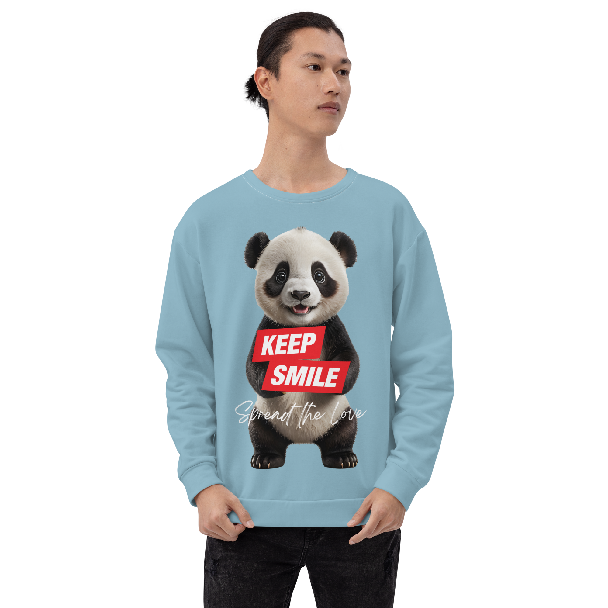 Keep Smile Blue Panda Unisex Sweatshirt