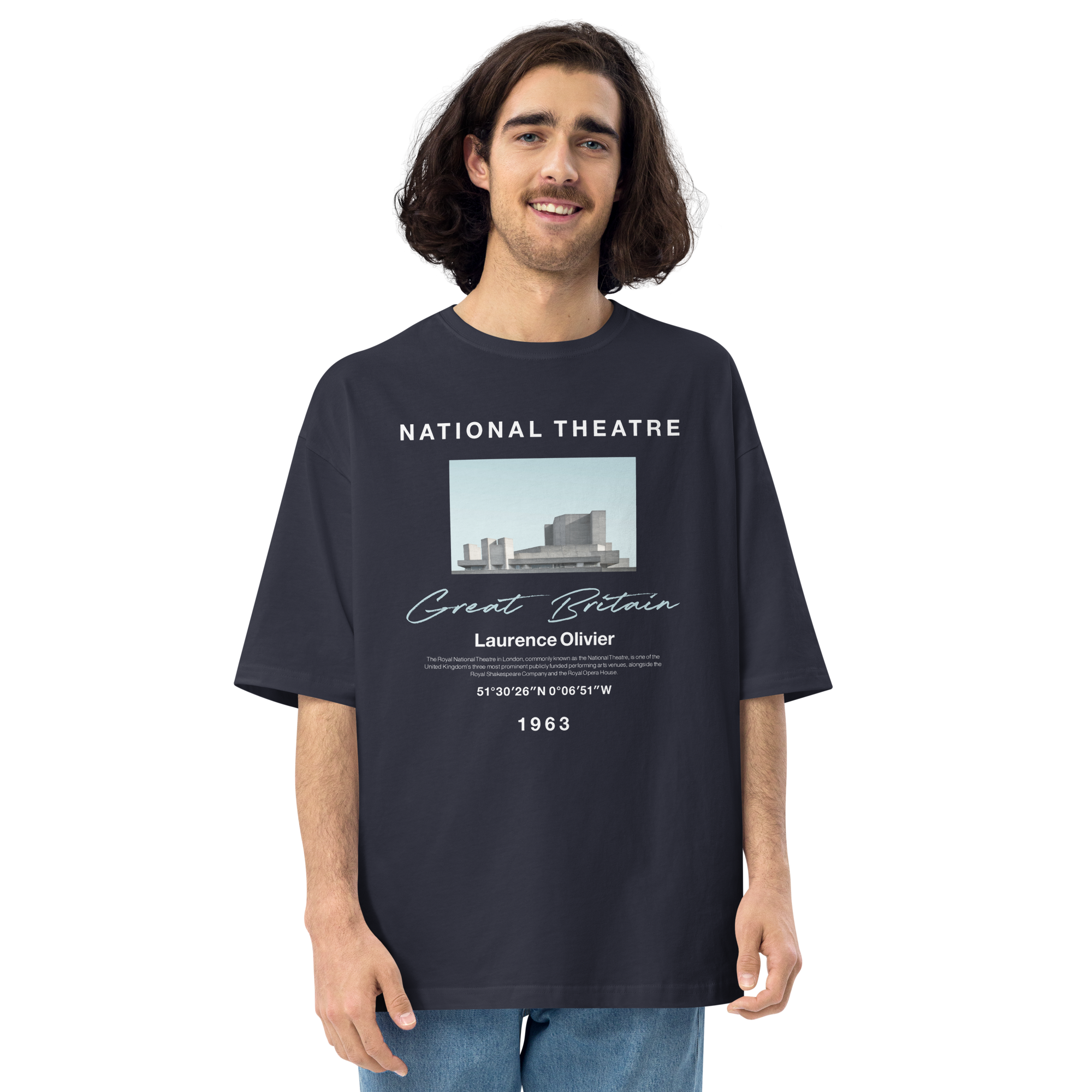 Navy / S Great Britain National Theatre Front Unisex Oversized T-Shirt by Design Express