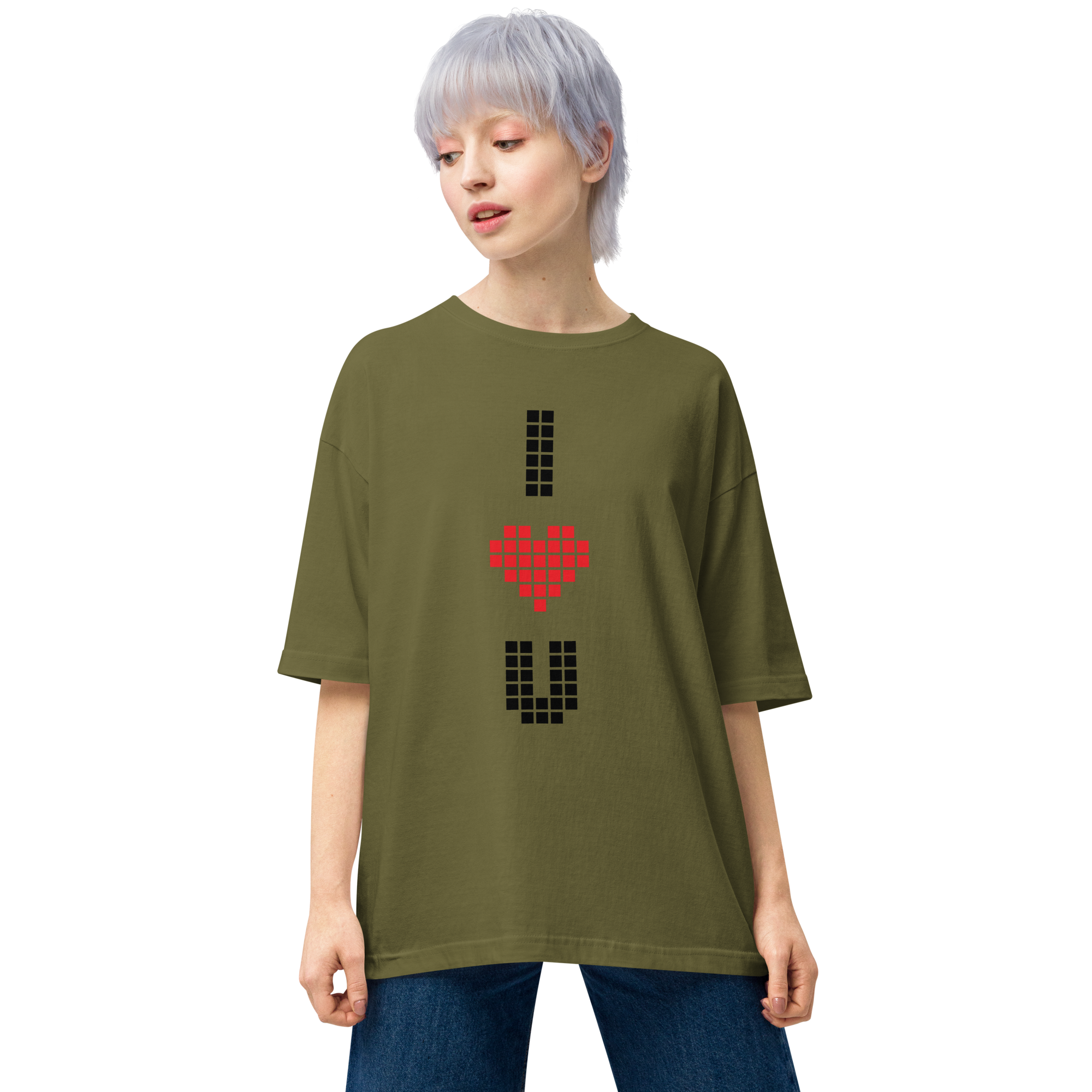 I Heart U Pixel Vertical Unisex Oversized T-Shirt by Design Express