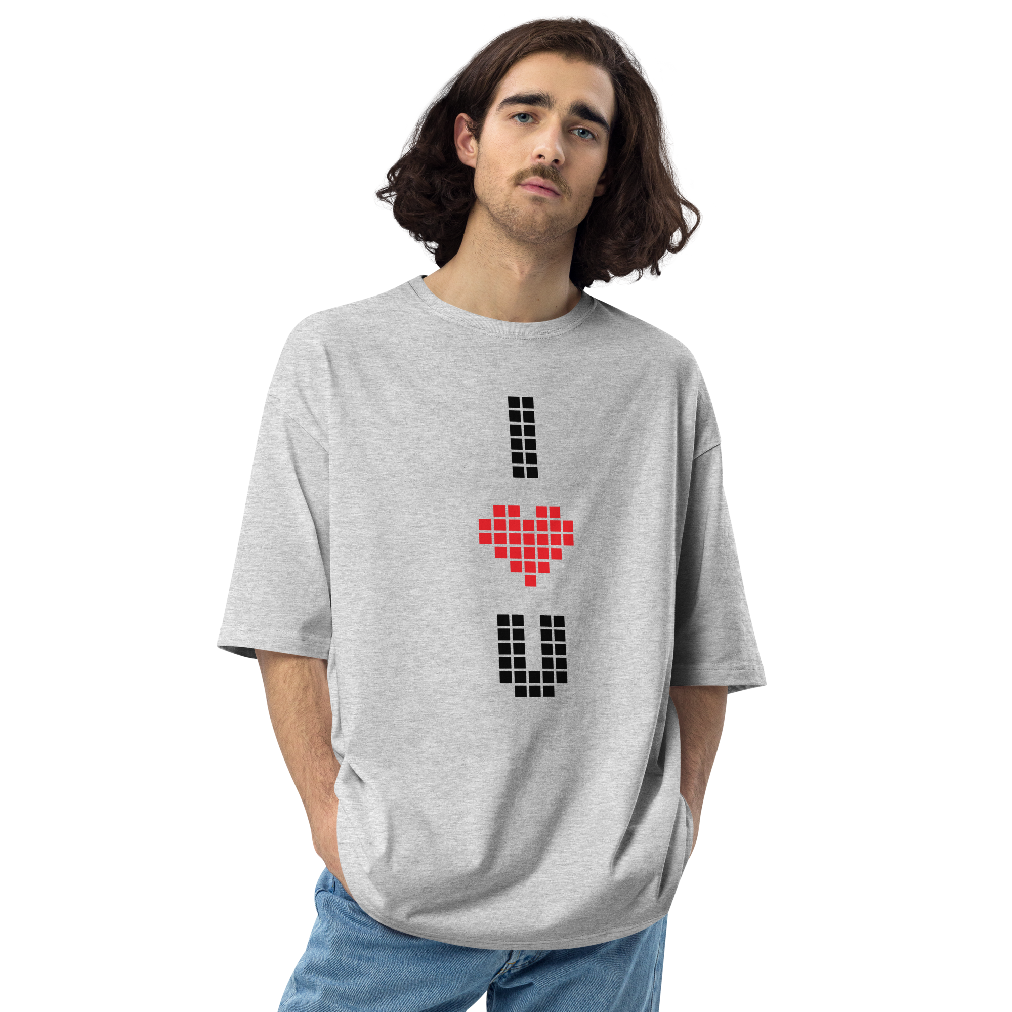 Mixed Grey / S I Heart U Pixel Vertical Unisex Oversized T-Shirt by Design Express