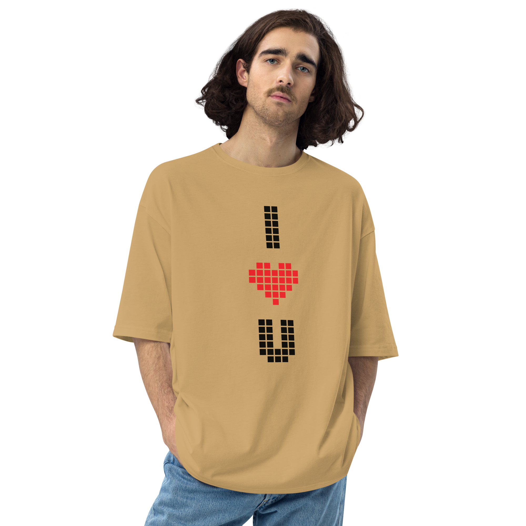 Sand Khaki / S I Heart U Pixel Vertical Unisex Oversized T-Shirt by Design Express