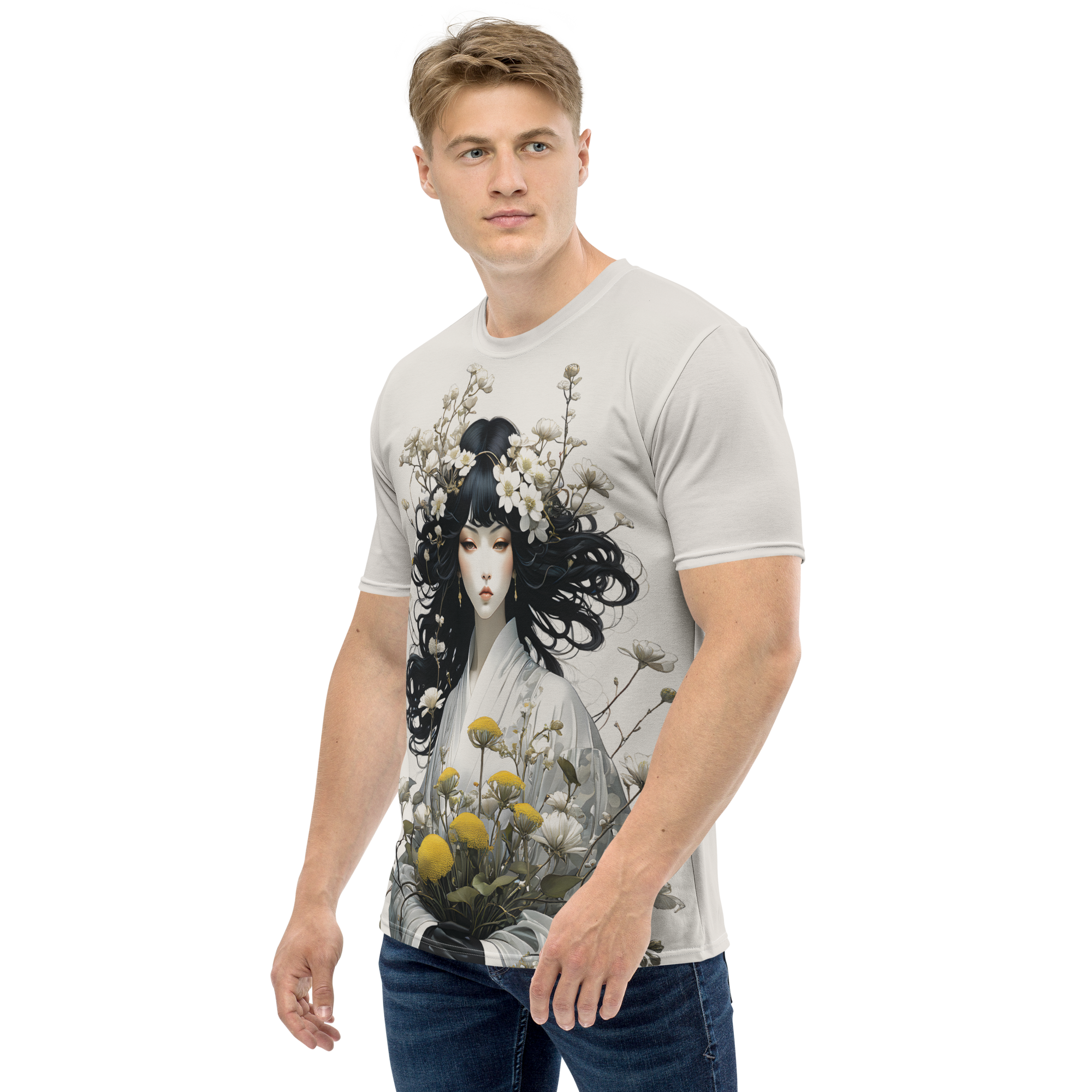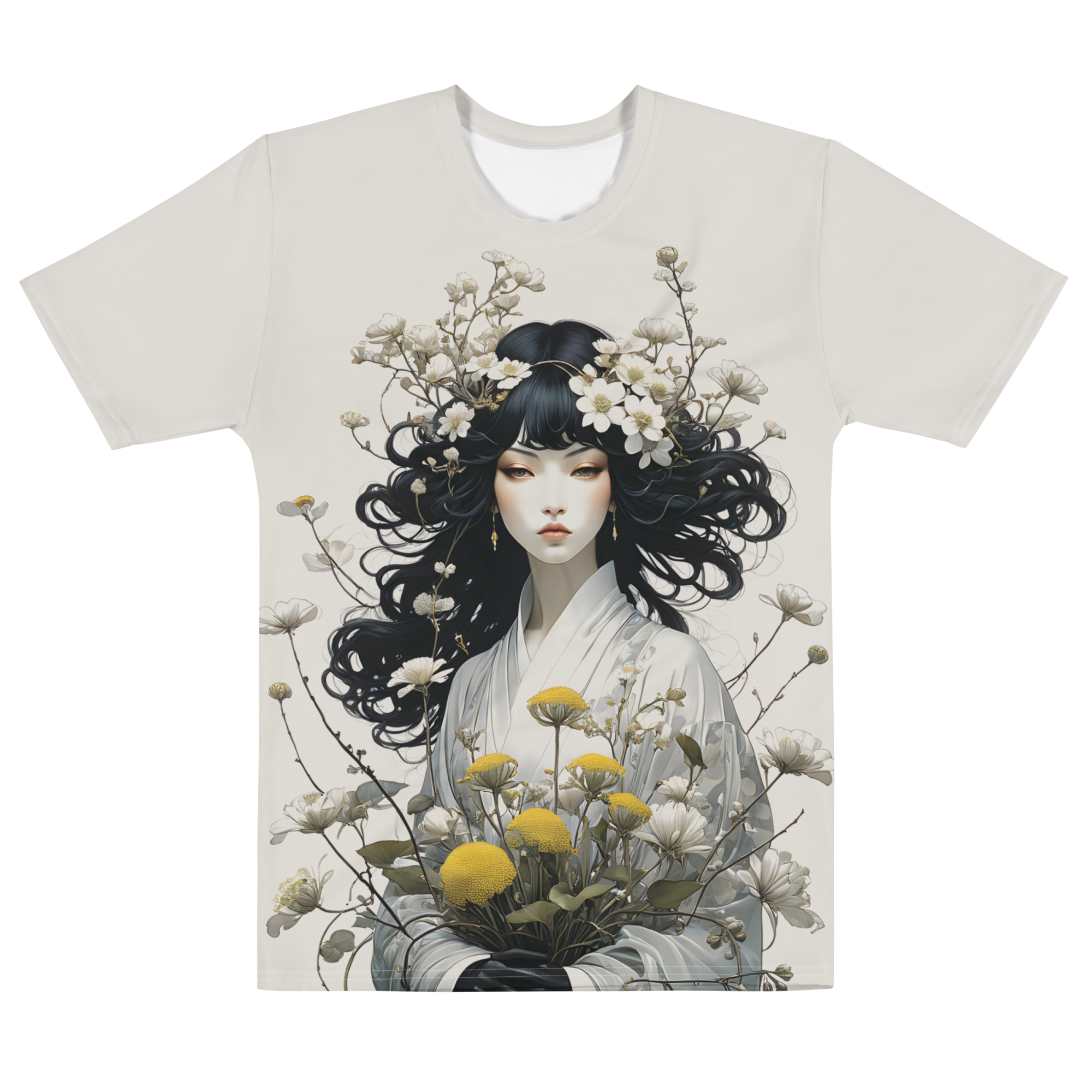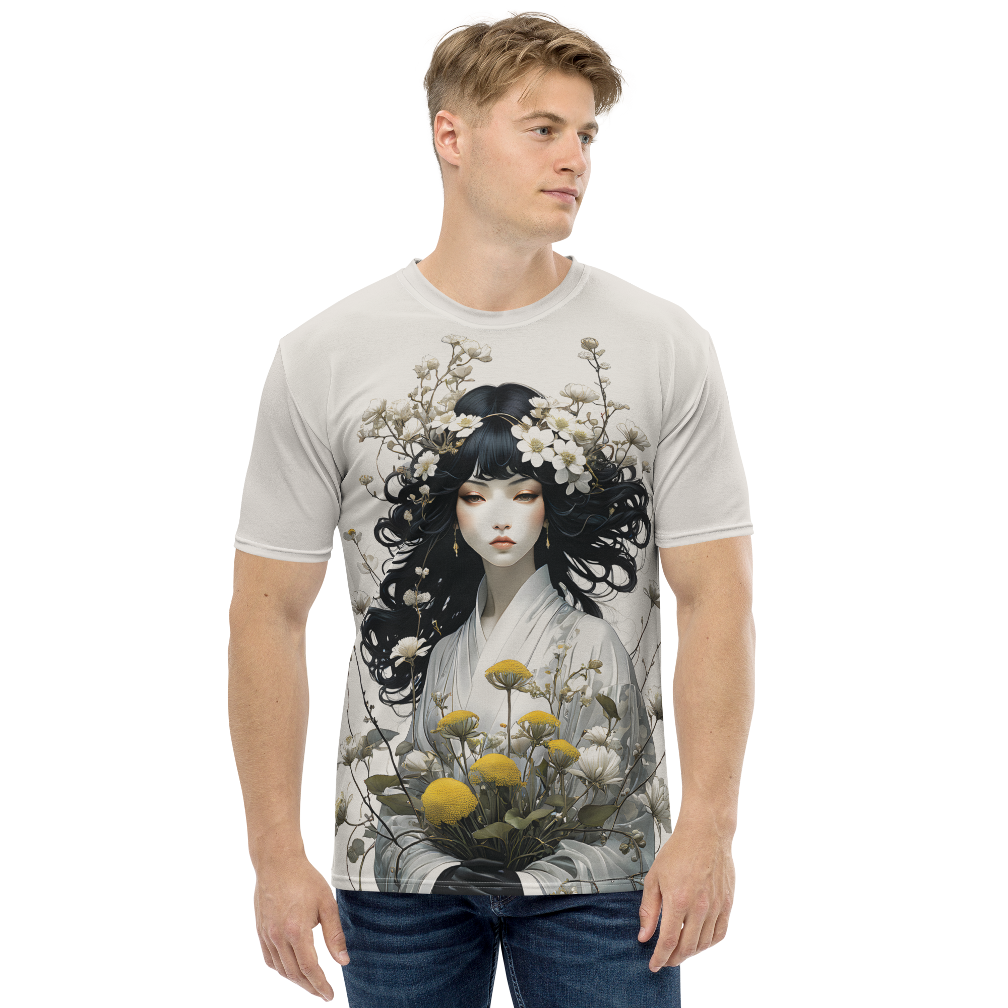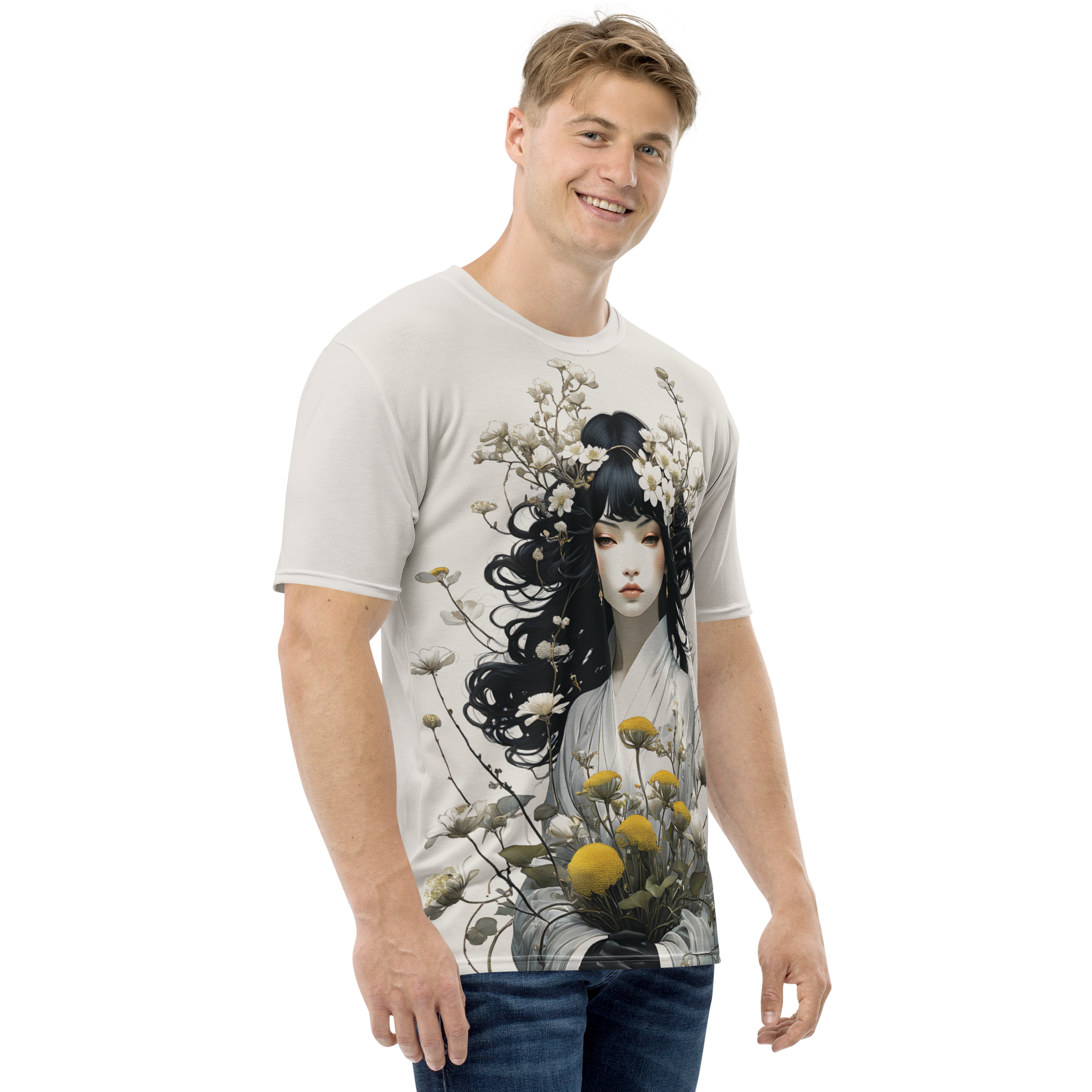 Oriental Lady with Yellow Flowers All-Over Print Men's T-Shirt