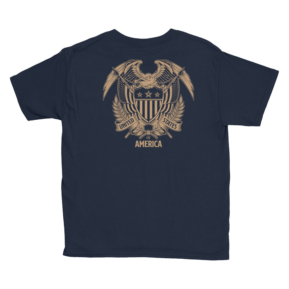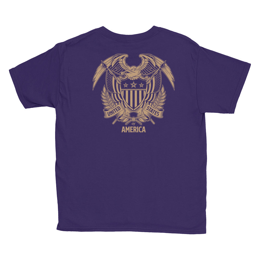 United States Of America Eagle Illustration Reverse Gold Backside Youth Short Sleeve T-Shirt