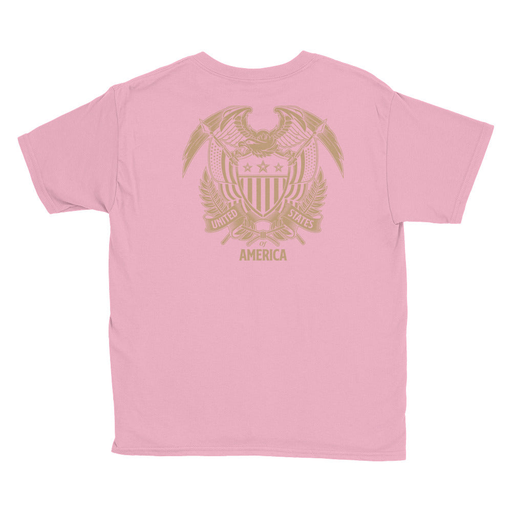 CharityPink / XS United States Of America Eagle Illustration Reverse Gold Backside Youth Short Sleeve T-Shirt by Design Express