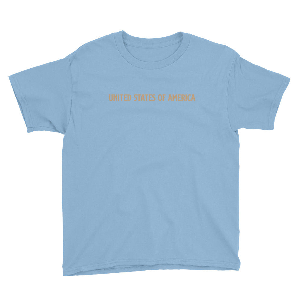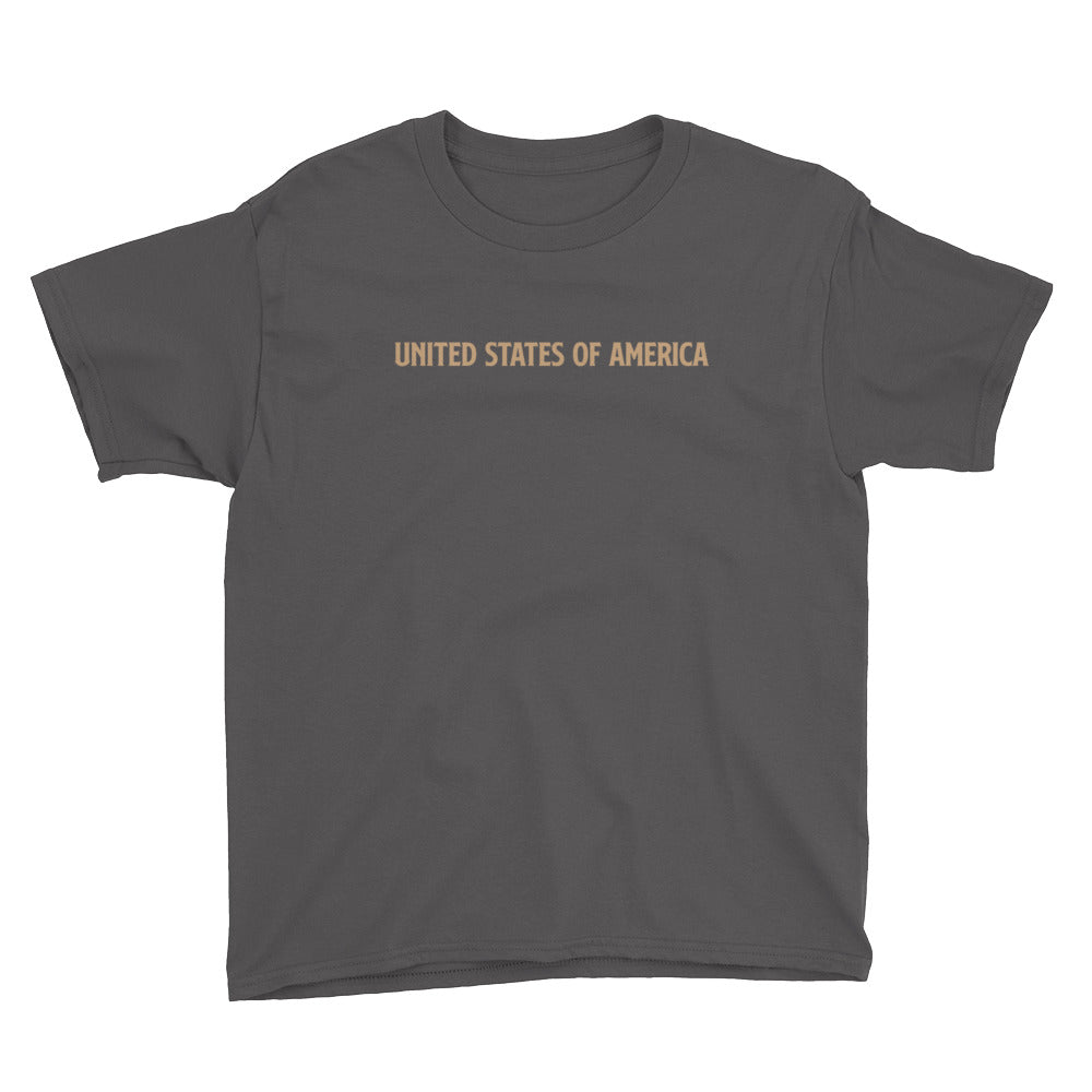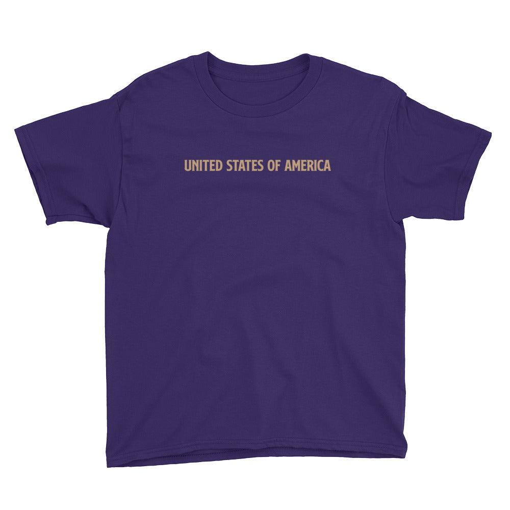 United States Of America Eagle Illustration Reverse Gold Backside Youth Short Sleeve T-Shirt by Design Express